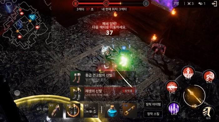 또, 특정 구간에서는 강력한 보스 몬스터가 등장해 캐릭터 성장의 수준, 혹은 이용자의 컨트롤을 시험하게 되는데, 이때는 조건의 제약 없이 입장할 수 있는 각 지역의 장비던전을 방문해 상급 장비를 얻는 행동도 필수적이다. 여기에 자신의 장비를 강화해나가면서 업그레이드시키고, 더 나은 장비를 얻었을 때엔 강화 전수로 부담없이 갈아탈 수 있다.