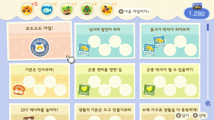얻은 마일리지로 구입할 수 있는 아이템 역시 도전 욕구를 불러일으키기 충분했다. 마일리지 상품에는 각종 DIY 레시피와 헤어스타일, 옷, 도구뿐만 아니라 다른 섬으로 갈 수 있는 '마일 여행권'까지 다양한 상품이 준비돼 채집을 한층 더 즐겁게 할 수 있었다.