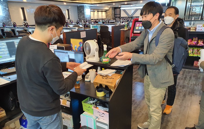 [자료 제공 = 게임물관리위원회] 게임물관리위원회(이하 ‘게임위’, 위원장 이재홍)는 지난 23일부터 경기도 부천시, 서울 금천구, 인천시 미주홀구 일대 PC방을 문화체육관광부(장관 박양우, 이하 ‘문체부’)와 각 지역 지자체와 함께 코로나19 확산 방지를 위해 직접 방문하여 긴급 점검 및 안전 지침 안내 활동 등을 실시하고 있다.