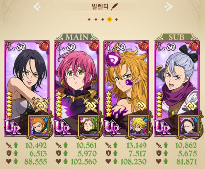 게임조선이 추천하는 발렌티 덱은 아래와 같다.