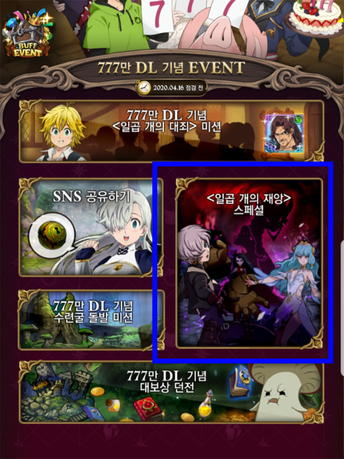 일곱개의대죄 777만 다운로드 업데이트는 역대 대규모 업데이트와 비교했을 때 가장 큰 규모로 무료 77연차와 7연속 SSR 확정 뽑기를 무료로 제공하는 것과 함께 복귀자를 위한 다양한 이벤트와 혜택도 함께 진행되고 있어 많은 호평을 받고 있는 중이다.