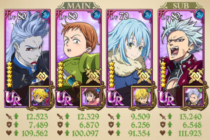 그 외에도 필살기 게이지 관리가 가능한 '<폭식의 죄> 대마술사 멀린', 자체 디버프 해제 및 반격 스킬을 보유한 '[마신족의 정예] [자애]의 에스타롯사', 강력한 반격으로 한방 역전을 노릴 수 있는 '<일곱 개의 대죄> 단장 멜리오다스'가 유용한 딜러로 활용 가능하다.