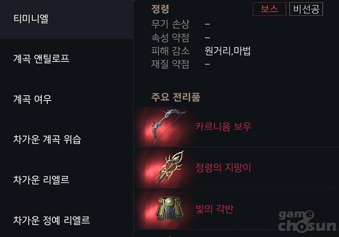 | 티미니엘 | 비선공 (보스) |