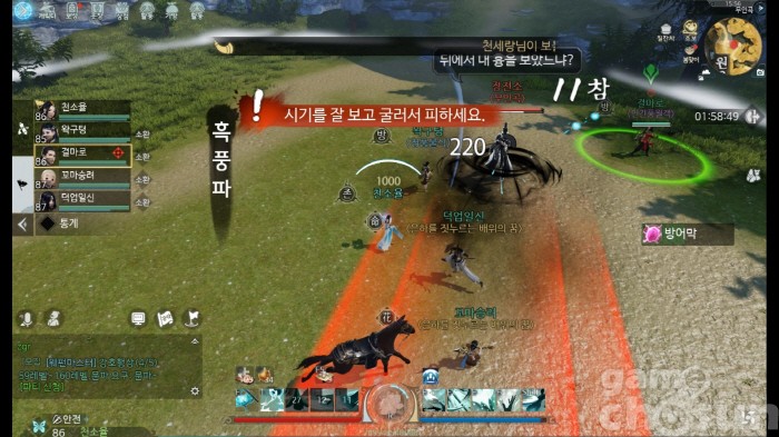 두 번 공격하는 기술이기 때문에 방심하지 말고 경공을 모두 사용하자 = 게임조선 촬영
