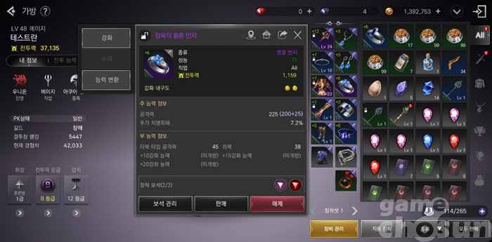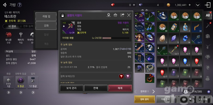 무기와 방어구는 강화와 합성이 자유롭다 = 게임조선 촬영