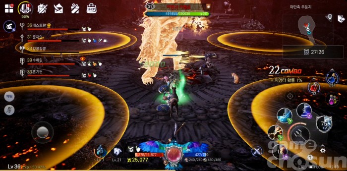 범위 공격 같이 강력한 기술로 무장하고 있어 수동 컨트롤이 권장된다 = 게임조선 촬영