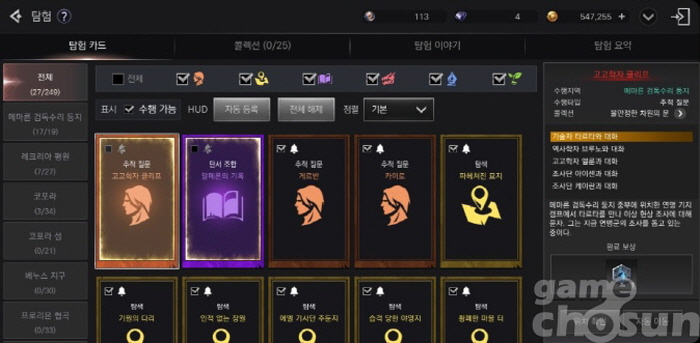 완수한 탐험 내용은 별도 페이지로 기록돼 수집의 재미까지 더했다 = 게임조선 촬영