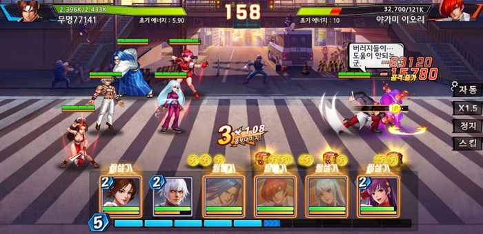 ‘킹오파 익스트림 매치’는 각 캐릭터들의 모습과 특징적인 스킬들을 모바일 환경에 맞게 재현해, 원작이 지닌 액션 쾌감이 고스란히 느껴진다.