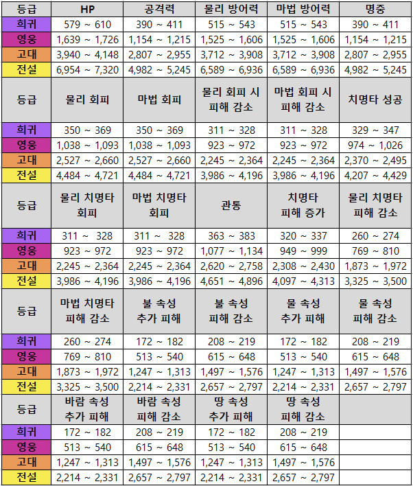 - 등급 별 옵션 능력치