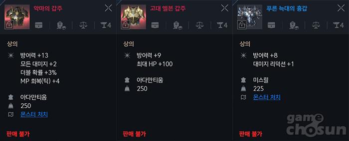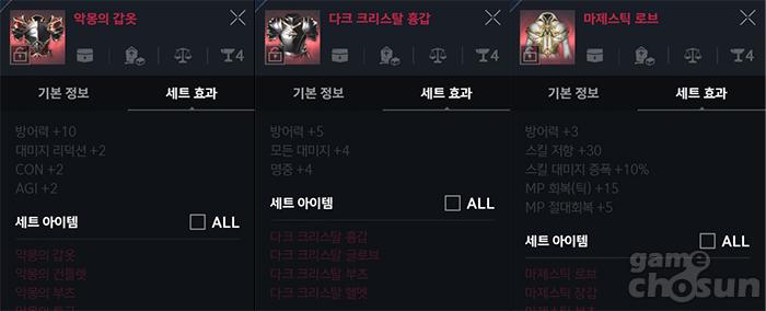 4개 세트를 다 착용하지 않으면 희귀 방어구보다 방어력 빼곤 뒤쳐지게 된다. = 게임조선 촬영
