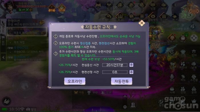 오프라인 상태에도 자동 사냥은 계속된다 = 게임조선 촬영