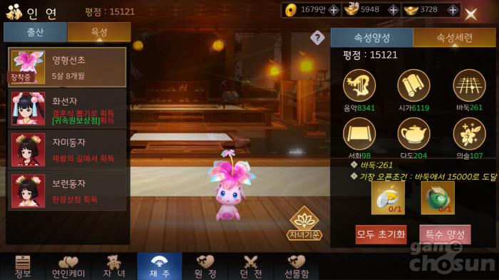 자녀의 특기를 올리면 그만큼 부모의 전투력이 상승한다 = 게임조선 촬영