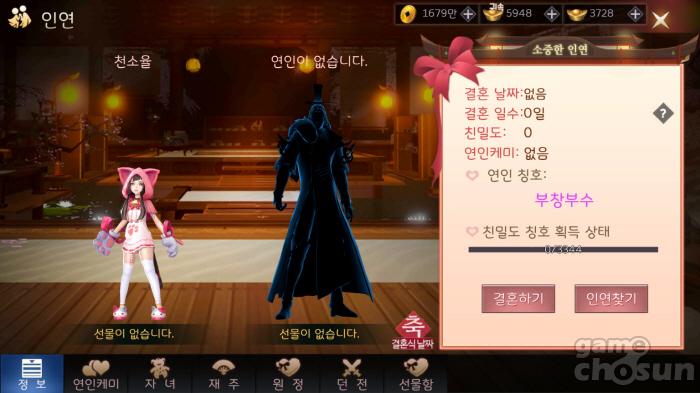 친구와 파티를 결성하면 결혼을 안해도 입장 가능 = 게임조선 촬영