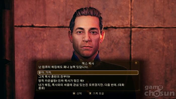 동료는 퀘스트를 통해 영입할 수 있다. 해킹에 능통한 맥스 목사 = 게임조선 촬영