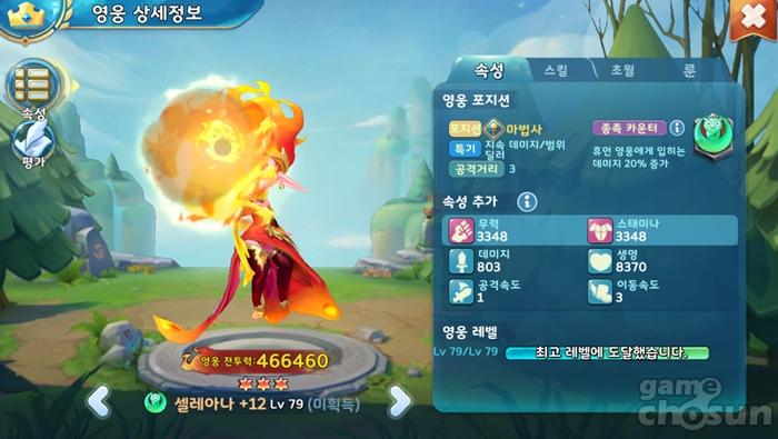 셀레아나는 수성전에서 매우 강력하기로 소문난 히어로다. 액티브 스킬인 '운석 추락'은 명중률의 편차가 다소 큰 편이지만 일단 목표에 적중했다면 연쇄 피해를 입히고 7성에 도달하면 폭격 횟수와 피해량이 80%까지 폭증하여 대열을 갖추고 들어오는 적의 병사나 영웅이 단숨에 빈사 상태에 이른다.