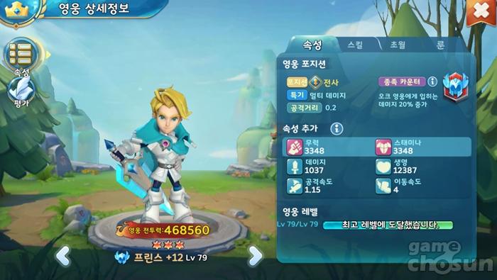 게임을 시작하자마자 획득할 수 있는 최초의 히어로 프린스는 딜러 역할을 수행하며 일반 공격과 연동되는 액티브/패시브의 스킬 시너지가 돋보이는 히어로다. 액티브 스킬인 도약 공격은 시전 중 무적 효과와 함께 지정 구역 내 단일 대상에게 5회의 공격을 가하며 3성, 6성, 7성 해제가 끝나면 도약 공격 스택 1회 추가, 도약 공격 직후 공격 속도 100%, 일반 공격 데미지 50% 상승, 일반 공격 3회마다 생명력 회복이 추가된다.
