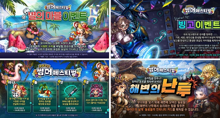 이번 썸머 페스티벌은 이달 16일까지 진행되며, 해당 기간 동안 ‘별의 마블’, ‘해변의 난투’, ‘빙고’ 이벤트 등 다채로운 즐길 거리로 유저들의 관심을 집중시키고 있다. 썸머 페스티벌을 통해 유저들에게 감사하는 마음을 전하기 위해 풍성한 선물도 제공한다. ‘별의 마블’은 도전자 던전 클리어 시 획득할 수 있는 주사위를 굴려서 보상을 얻을 수 있는 이벤트다. 이벤트에 참여하면 ‘신발’, ‘골드’, ‘초월의 정수’ 등 다양한 아이템을 획득할 수 있다.