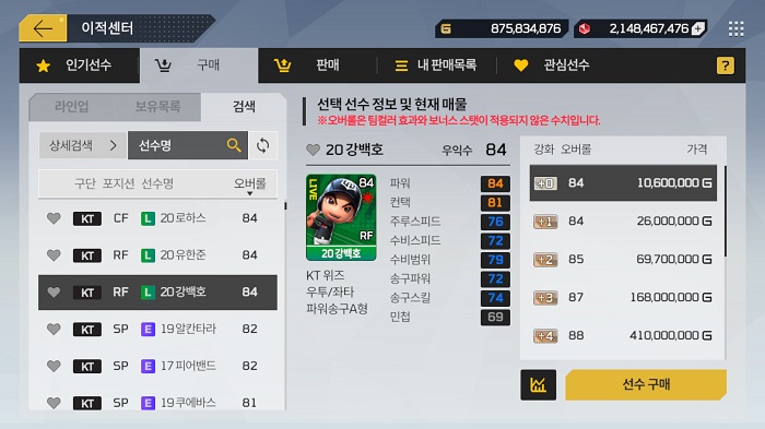 ‘마구마구2020 모바일’의 이적센터는 이용자들 간 자유로운 거래가 가능하다. 이용자는 위시카드를 카드팩이 아니더라도 이적센터에서 손쉽게 획득할 수 있고, 동시에 본인에게 필요 없는 선수카드는 판매할 수 있다.