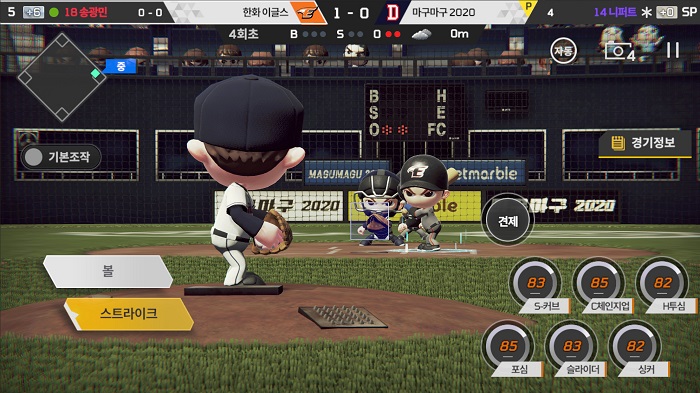 동시에, 기존 야구게임 이용자들을 위해 ‘숙련조작’도 지원한다. ‘숙련조작’은 PC 온라인 게임 ‘마구마구’ 조작방식과 매우 유사하다. 공이 올 것 같은 위치와 일반/파워 타격 여부를 선택하는 과정에서 상대방과 치열한 심리전을 경험할 수 있다.