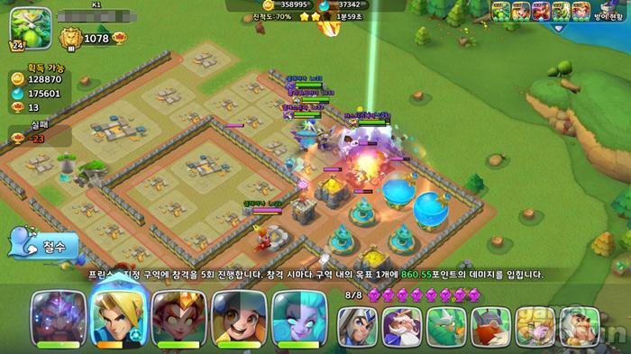 클래시 붐의 메인콘텐츠는 적당히 짜임새 있게 구조물들을 세우고 영웅과 병사를 키워서 상대 진영을 약탈하는 '영지 전쟁'이다. 때문에 이 게임이 주는 첫인상은 일반적인 타 SLG와 크게 다르지 않을지 모른다.