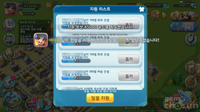 가장 눈에 띄는 기능은 바로 건설 및 개발 지원이었다. 비록 친구나 클랜원의 시간을 고작해야 10분 밖에 압축하지 못하지만 신청할 수 있는 대상이나 횟수에는 제한이 없고 지원하는 입장에서도 딱히 비용 소모가 발생하지 않으며 오히려 도와주면 첫 10회에 한해서는 거꾸로 지원한 사람에게 적지 않은 보상이 들어오는 구조를 가지고 있다.
