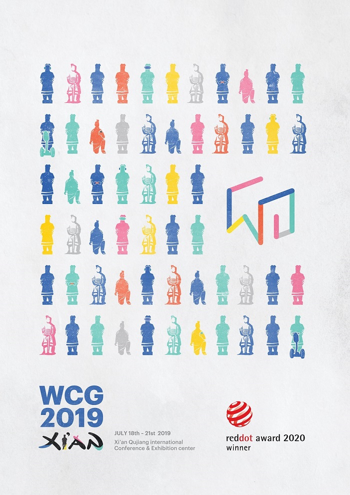 WCG 2019 Xi’an의 메인 포스터는 개최지인 중국 서안의 유적 병마용을 활용, 이스포츠의 역동성과 트랜디함을 표현했다. WCG는 해당 디자인을 포스터 외 행사장 내부에 설치된 각종 조형물부터 MD까지 다양한 구성물에 적용해 친근함을 선사하며 관람객들에게 호평을 받았다.