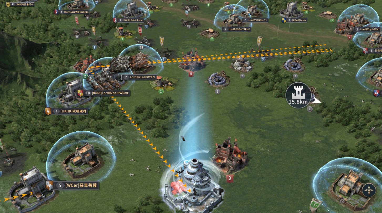 월드맵에서는 자신의 성 뿐만 아니라 주변 이용자의 영지를 확인할 수 있으며, 많은 이용자가 반란군 소탕을 하거나 벌써부터 가문 단위로 도시를 공략하는 등, 병력이 이동하는 것을 목격할 수 있다.