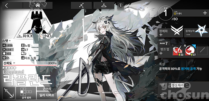 다만, 스킬을 사용하기 위한 SP가 모든 레벨에서 50으로 고정이라 '프틸롭시스'처럼 SP 회복 속도 상승효과가 있는 오퍼레이터의 도움이 없다면 자주 사용하기 어렵다.