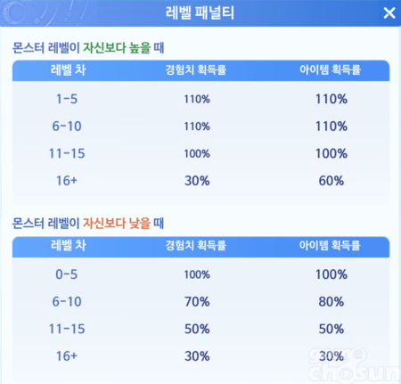 자기 레벨보다 5 낮은 몬스터를 빠르게 사냥해 더 많은 시간당 경험치를 챙기는 것도 좋은 방법 = 게임조선 촬영