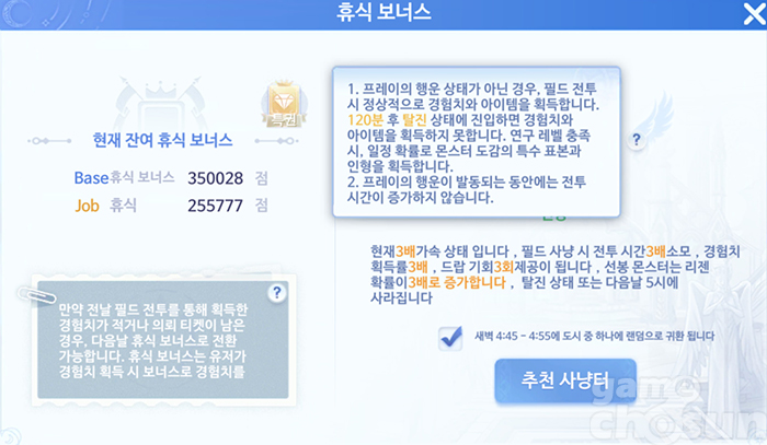 빠른 레벨업을 위해선 휴식 보너스와 신기한 사탕, 사냥 시간을 고려한 효율적인 경험치 획득이 중요 = 게임조선 촬영