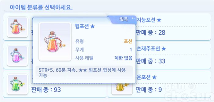 원킬 사냥을 원하면 포션을 사용하는 방법도 있지만 가성비가 나쁘다 = 게임조선 촬영