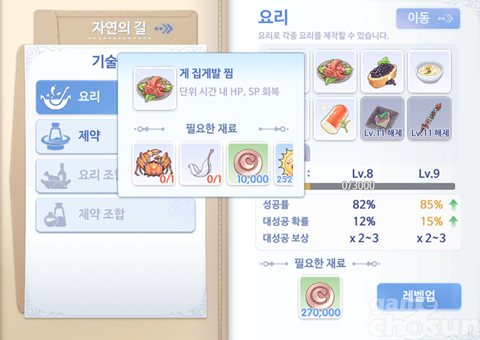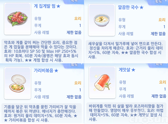 효율 좋은 요리 4종 = 게임조선 촬영