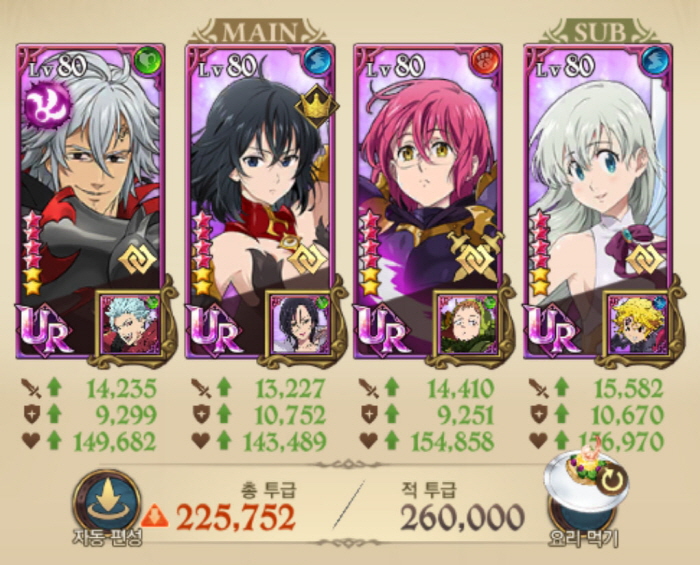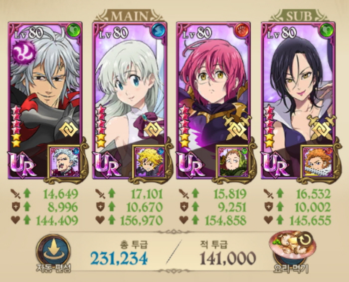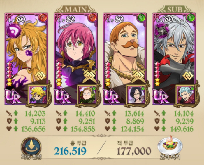체력 에스타롯사와 코인 고서 외 영웅은 어느정도 선택 가능. 보조 딜러로 강력한 딜러를 데려가거나 '여신족 엘리자베스'나 힐러를 데려가 파티의 안정성을 높이는 것도 가능하다. 서브 영웅 역시 체력, 공격력, 필살기 게이지 등을 보조해주는 영웅을 선택해 데려가자.