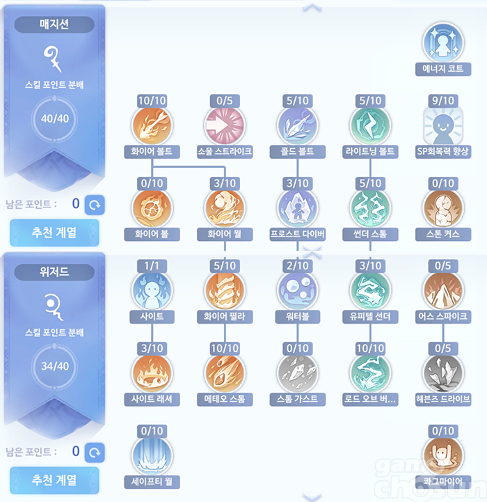 대부분의 위저드 이용자들은 마법 피해와 캐스팅 속도를 동시에 높이기 위해 INT와 DEX를 1:1로 투자한다. INT만 올리면 DEX가 낮아 캐스팅이 긴 마법들을 제대로 활용하기 어렵고, DEX가 지나치게 높으면 마법 피해량이 낮아 적들을 제대로 처리하기 힘들기 때문이다. 두 요소를 어느 정도 챙길 수 있는 1:1 투자는 어떤 상황에서도 유연한 대처가 가능한 방식이라고 할 수 있다.