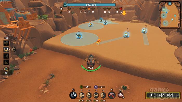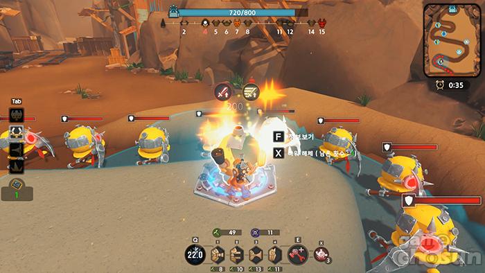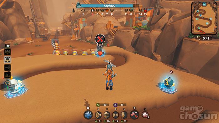 플레이어는 여러 방법으로 맵을 돌아다니며 포탑을 수리/업그레이드/철거 후 설치 역할을 수행한다. = 게임조선 촬영