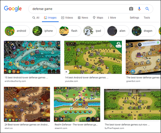 일반적인 디펜스 게임은 라인에 맞춰 수비하는 것이 기본이다. = 구글 검색 결과 갈무리