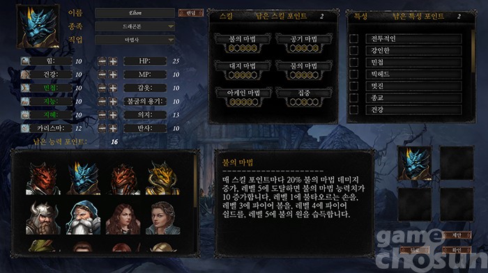 직업, 종족, 스탯, 스킬, 특성 설정 등 던전 앤 드래곤의 시스템의 거의 그대로 차용 = 게임조선 촬영