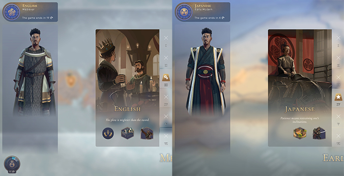 휴먼카인드는 청동기부터 현대 시대까지 여섯 가지 주요 시대를 제시하고 한 시대에서 다음 시대로 넘어갈 때 다양한 문화권을 고를 수 있는 것이 특징이다. 예를 들어 중세 시대는 아즈텍을 선택하고, 근세 시대에는 조선을 택하는 것도 가능하단 것. 다른 플레이어가 선점한 문화는 고를 수 없지만, 게임 시작부터 끝까지 같은 문명을 플레이해야 하는 다른 역사 시뮬레이션과 비교했을 때 유연함이 돋보이는 시스템이라고 하겠다. 이번 오픈 데브 버전에서는 문화권을 고를 수 없었지만, 상정된 문화권의 특성, 특화 유닛이 가능해 미션 공략의 핵심이 되기도 했다.