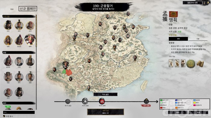 신규 세력의 플레이 방식도 흥미롭다. 남만 세력의 지도자들은 중원 세력과 달리 모든 부족을 단결시키고, 남만 영토의 현 21개를 포함해 총 50개의 현을 지배해야 승리한다. 중원의 패자들과 각축을 벌여야 하는 군웅들과 달리 비교적 우호적인 남만 부족을 규합하고, 중원 세력을 괴롭히면 되는 것이다.