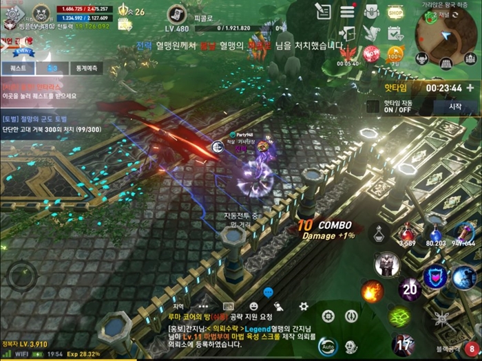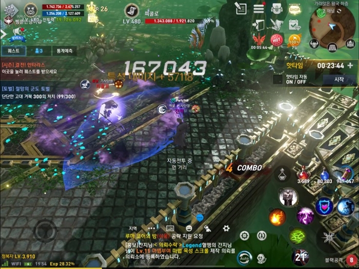 사냥 속도가 메이지 캐릭터 치고는 매우 준수한 편이에요. 스킬 쿨이 돌때도 각종 패시브와 버프의 지원을 받아 지팡이 평타가 은근 쏠쏠하고 다크 브레스로 몰이 사냥이 출중하니 상위권이라 칭하기에 부족함이 없습니다.