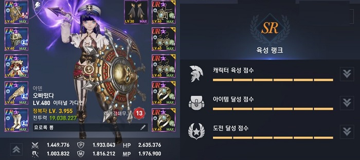 안녕하세요 아덴 서버에서 가디언을 오랫동안 키우고 있는 오빠떴다라고 합니다. 전투력은 1900만으로 SR 육성 랭크를 달성, 가디언 내에서는 1위, 전체 직업 중에서 4위를 차지하고 있습니다.
