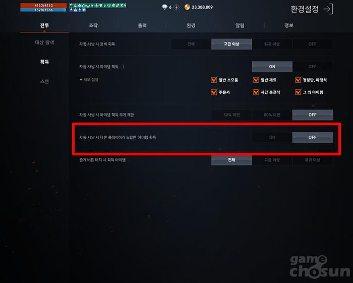 엔씨소프트는 이러한 논쟁과 관련해 '자동 사냥시 다른 플레이어가 드랍한 아이템 획득' 이라는 기능을 추가해 온/오프가 가능하도록 했다. 아이템의 종류나 희귀도와는 별개로 다른 플레이어가 드랍한 아이템은 완벽히 무시할 수 있기 됐기 때문에 아이템 획득 논쟁을 피해 갈 수 있게 됐다. 신입/복귀 유저라면 이 옵션은 반드시 알아두고 온/오프 여부를 잘 선택하도록 하자. 이 기능은 환경설정>전투>획득에서 설정할 수 있다.