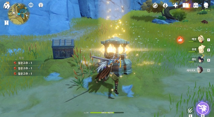 몬드, 리월 각 지역마다 10개씩 있으며 한정된 개수만큼 상당히 많은 양의 모험 경력과 아이템을 얻을 수 있다.