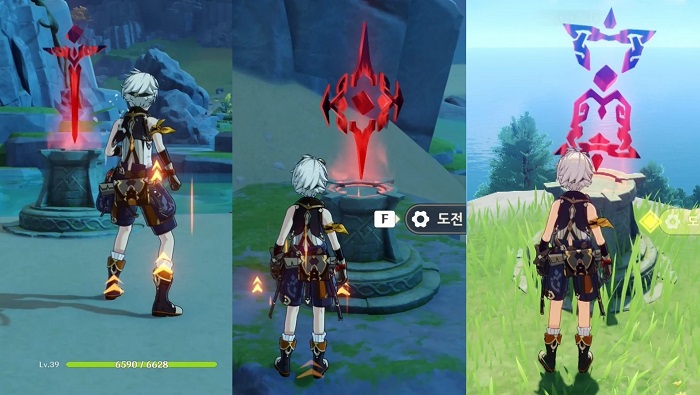 모험을 하다 보면 발견할 수 있는 붉은색 모양의 문양이 떠 있고 접근할 시 ‘도전 시작’을 통해 시련에 도전할 수 있는 곳이 있다.