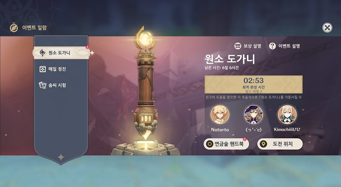 대부분의 여행자는 1인 플레이로도 대부분의 콘텐츠를 체험할 수 있어 다인 모드에 대한 정보나 필요성을 잘 느끼지 못하는 상황이었다. 하지만 이번 '원소 도가니' 이벤트가 추가되면서 다양한 보상과 함께 다인 모드를 체험해볼 수 있게 됐다.