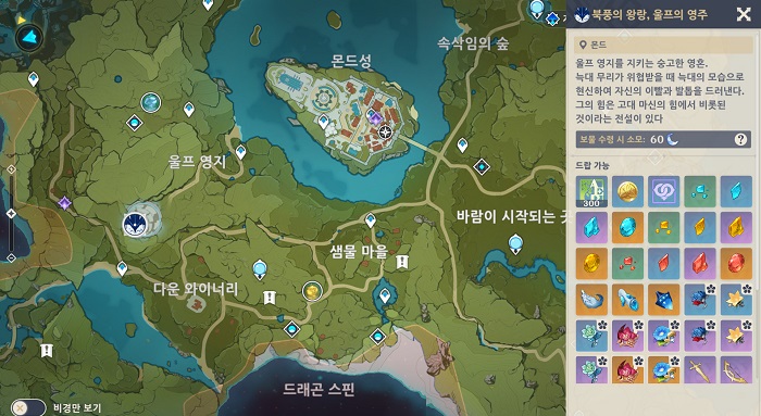 지도에서 해당 보스 몬스터의 위치를 파악할 수 있다 = 게임조선 촬영