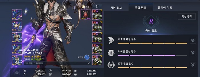 안녕하세요. 저는 발라카스 서버 척살혈맹에서 어드벤처러를 육성하고 있는 brabus19(브라부스19) 입니다. 육성 기간은 3년이 조금 안되고 전투력은 1875만입니다. 남들보다 1년 정도 게임을 늦게 시작해서 아직 가야할 길이 멀다는 느낌입니다.
