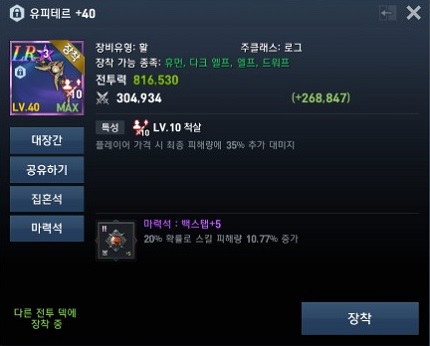 어드벤처러의 베이스가 단검 클래스여서 활을 장비 강화, 특성 강화, LR작까지 모두 하는 것이 부담스럽게 느껴지실 수 있겠지만 적어도 PvP에서 활용도가 높은 희귀 장비 '유피테르'는 꼭 가져가시길 추천드립니다.