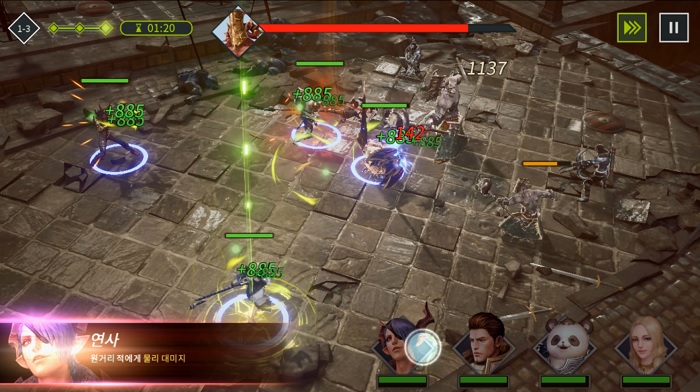 건물 중 '시공의 균열'은 RPG의 특징을 녹여낸 콘텐츠다. 시공의 균열에서는 이용자가 모집한 영웅을 파견해 전투를 벌이게 되는데, 최대 6명의 영웅을 배치해 스테이지를 클리어하는 방식이다. 전투는 자동으로 진행되지만, 각 영웅이 보유한 스킬은 적재적소에 이용자가 직접 사용해줘야 하므로, 약간의 타이밍 싸움을 요한다. 또, 강력한 보스 몬스터가 등장함에 따라 각 영웅의 포지션 별로 조합하는 것이 매우 중요하다고 할 수 있다.