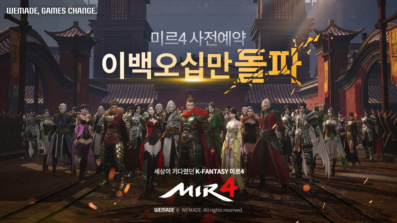 [자료제공 = 위메이드] 위메이드(대표 장현국)가 준비 중인 대작 모바일 MMORPG 미르4가 오늘(9일) 사전예약자 250만 명을 돌파했다.